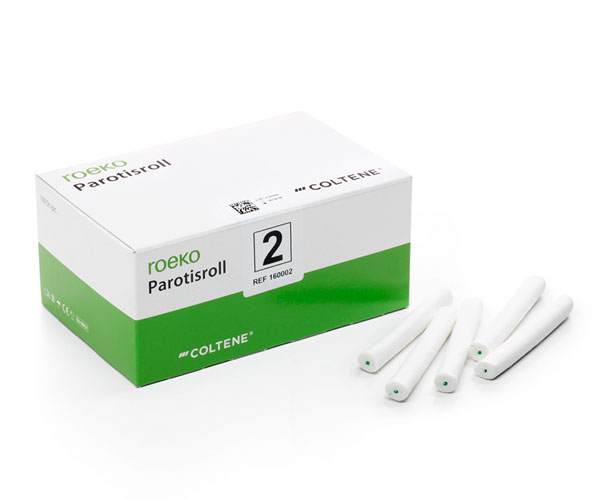 Parotisroll is a unique dental cotton roll thanks to its integrated elastic rod. The tension of this rod keeps the Parotisroll in place and prevents it from moving. By applying slight pressure on the parotid glands, the cotton roll reduces saliva flow. Whether used in the buccal, lingual, or labial position, the cotton roll keeps the mouth open and retracts the tongue and lips. Parotisroll provides the necessary space to work effectively and comfortably.