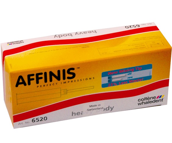 Affinis is an A-type silicone with a surface affinity and ideal viscosity properties: - Its rapid and unique affinity with the moist structure allows it to flow like a hydrocolloid, reaching the most critical areas without the need to apply any pressure with the tray material. - The special combination of additives creates minimal resistance to viscosity (self-adapting consistency), preventing air entrapment while the material is sufficiently thixotropic to avoid dripping outside the preparation.