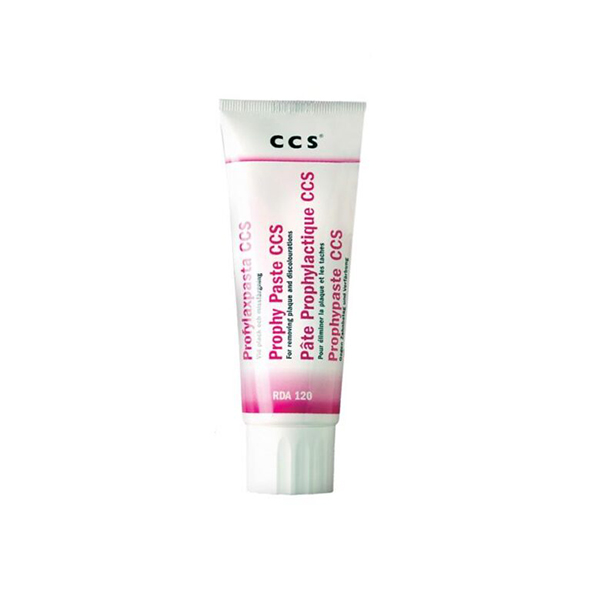 Pasta com flúor para polimento e limpeza. A pasta de Profilaxia CCS está disponível em 4 granulações que variam de muito grossa (para lidar com as manchas mais difíceis e a placa) até muito fina (para um acabamento de alto brilho). Fácil manuseio. Sem salpicos nem separação. Utiliza-se com escova ou borracha. Sabor a menta suave para uma sensação de frescura.