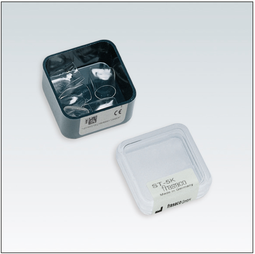 Coroas temporárias de celuloide elásticas, extra-finas e fáceis de cortar.