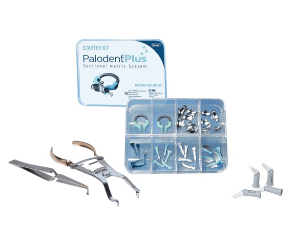 The rings provide consistent separation force and are made of Nickel Titanium, ensuring a longer lifespan than stainless steel rings. The teeth of the rings contribute to excellent retention on the tooth. Rings and wedges can be overlapped and work well in complicated Class II restorations, such as those missing a cusp. The anatomical design of the wedges and wedge guards provides better sealing and tighter contacts. Contents: 20 matrices (5 x 45 mm, 15 x 55 mm), 15 wedges - 5 of each size: small, medium, large, 5 WedgeGuards (medium), 5 EZ anti-stick shields size 55 mm, 2 universal rings, 1 clamp, 1 pin clamp, and 1 sample of SDR (4 compules).