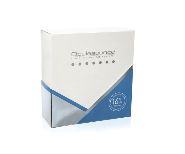 Dental whitening system with different concentrations of carbamide peroxide 10% - 16% with potassium nitrate and fluoride. It has a sticky and viscous consistency that prevents leakage outside the tray. PATIENT KIT: 8 x 1.2 ml (150 g) Opalescence PF + 1 x 30 ml (28.3 g) Opalescence toothpaste + 1 pocket case for trays + 1 Opalescence bag + 1 colorimeter. Flavorless. Application time: 4-6 hours. EXCLUSIVE SALE TO DENTISTS.