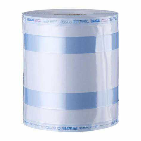 Rollo para esterilización (de fuelle) de papel médico de alto gramaje ( 60g/m²) y doble capa de pelicula celeste en poliestereno/polipropileno. Tres soldaduras laterales de canales impermeables y homogeneos para la máxima protección micróbica. Dotados de indicadores químicos de viraje para esterilizaciónes de vapor o de EtO gas ( óxido de etileno ). Adecuada pelabilidad sin emitir fibras de papel o desgarramiento del papel al abrir el envase. Completamente coforme con la directiva 93/42/CEE ( y posterior enmienda 2007/47/CE) y la norma EN-868-1