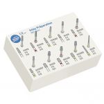 Fresero para el pulido de cerámica. Contiene 9 pulidores en las formas de llama pequeña, copa y lenteja y los granos grueso, medio y fino.