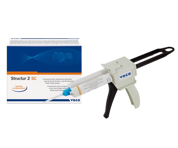 Material para coroas e pontes provisórios autopolimerizáveis em cartuchos. Elaboração rápida e fácil. Menos de 1 min. de tempo de endurecimento na boca. Fácil de modelar e polir. Provisórios de longa duração. Alta estabilidade da cor e da forma.